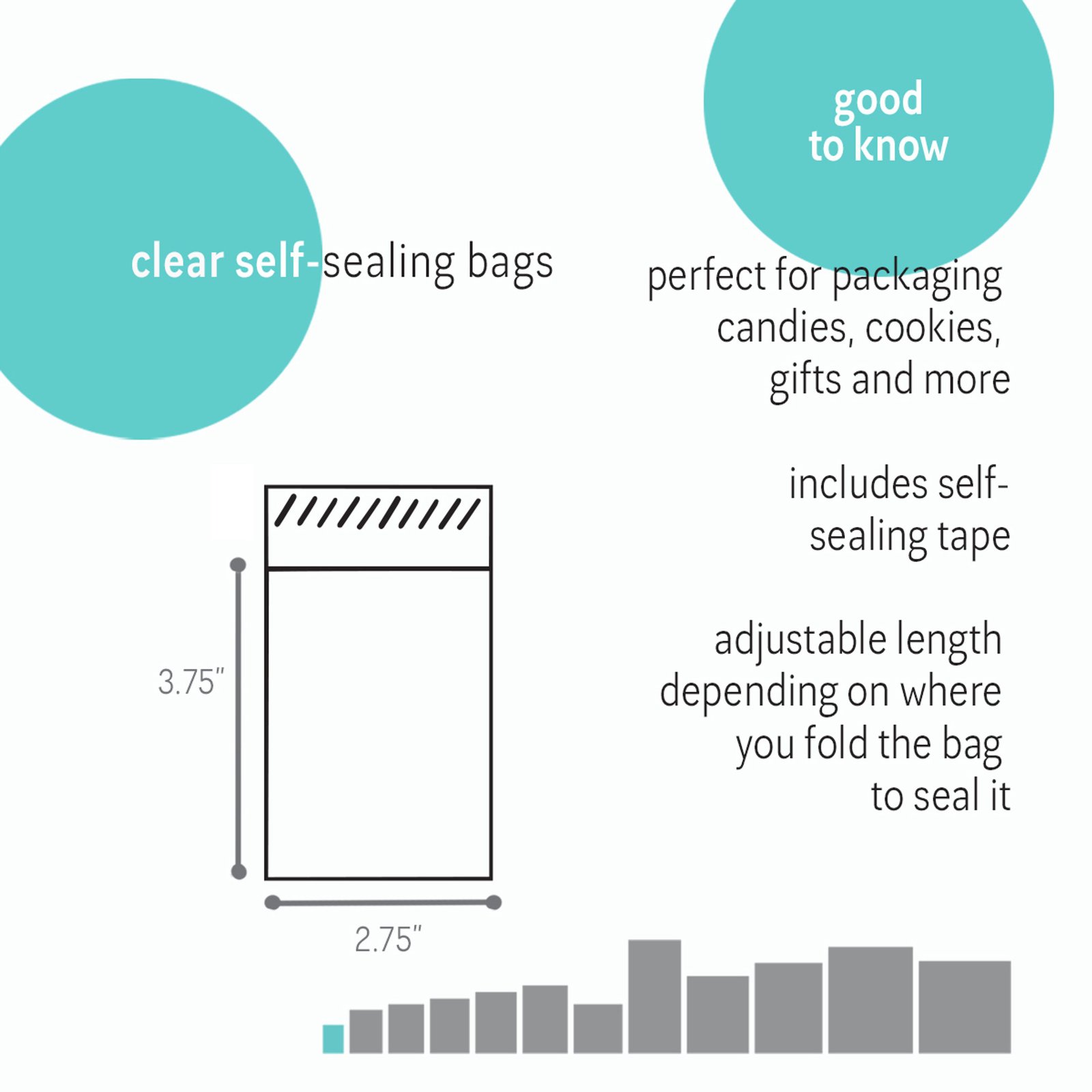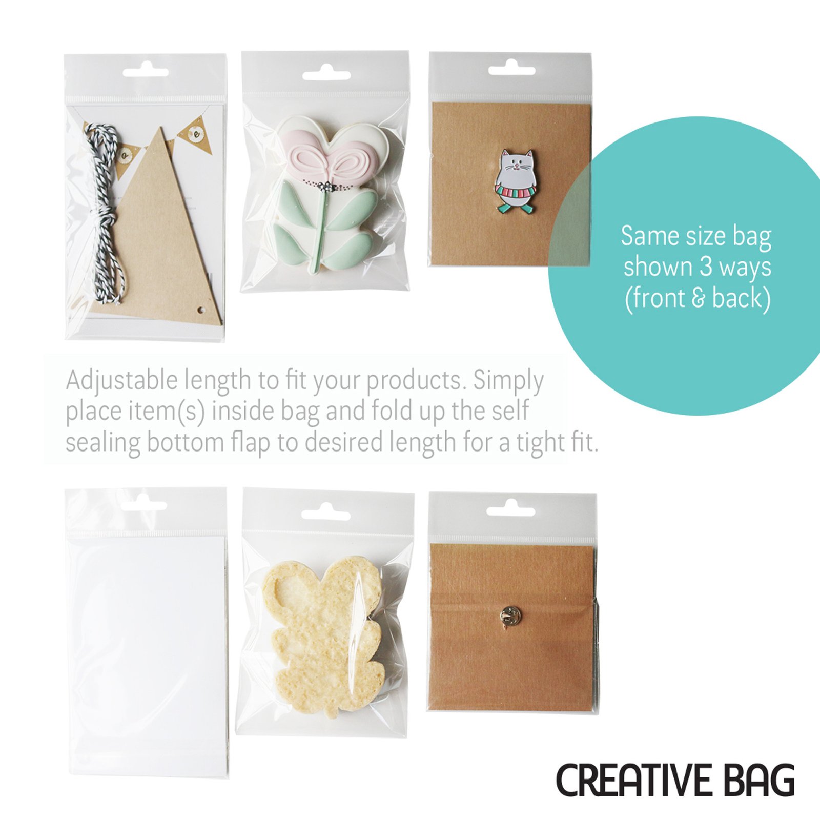 Our Clear Self-Sealing Bags are a functional and cost-effective approach to packaging your eye-catching products. These durable clear polypropylene bags feature an easy-peel sealing strip meaning no heat is required to seal them. These bags are approved for food use, acid free and are crystal-clear, making them perfect for packaging food, candies, chocolates, baked goods, gifts and much more!