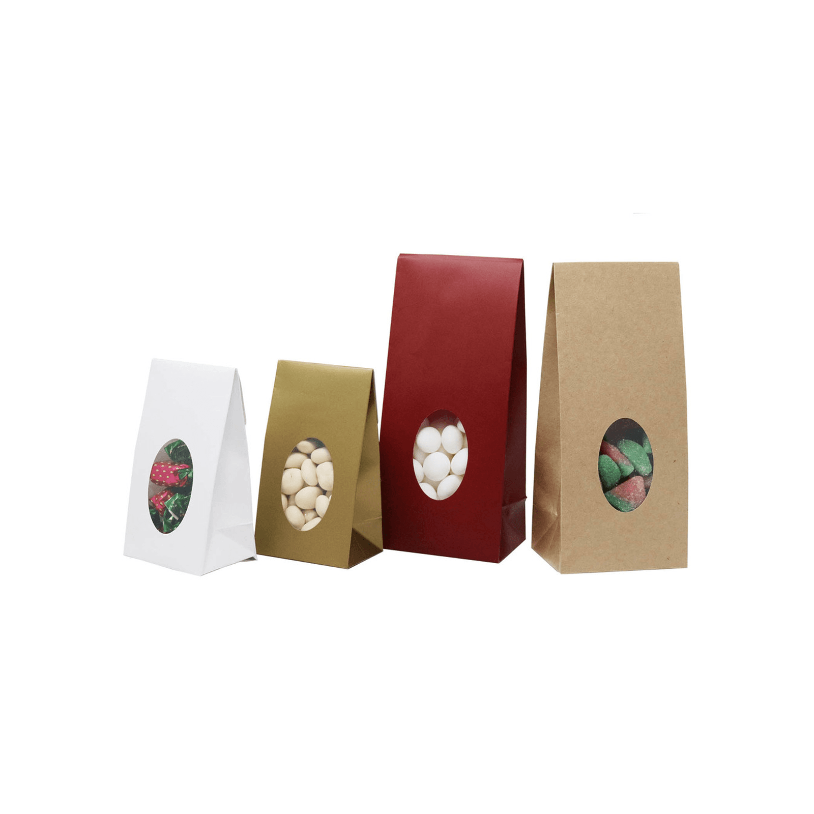Elevate your packaging with our premium stand up candy bags with window. Designed to display chocolates, candies, cookies, nuts, and other treats, these bags feature a clear round window that lets customers see what’s inside while keeping contents fresh. Ideal for bakeries, candy shops, gift packaging, or party favors, these durable paper bags come in multiple sizes and colors to suit your brand. Perfect for professional food packaging or personal gifting.